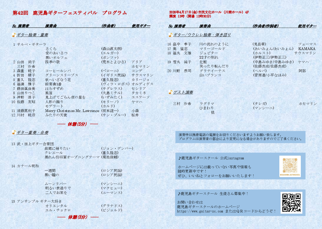| レッスン科目 | クラシック フォーク フラメンコ ウクレレ 他 |